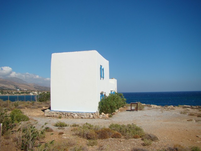 Nádherný samostatný domeček, postavený v kykladském stylu učaruje jistě všem. Ideální pro klidnou dovolenou stranou všech ostatních. Domeček stojí na okraji letoviska, na útesu s nádherným výhledem a okolo sebe má moře ! Ze všech oken se Vám tak naskytne uchvacující pohled na blankytně modré vody Libyjského moře a na benátský hrad - dominantu okolí. Ke koupání můžete využít jednu z malých pláží, ležící přímo pod domečkem. Nedaleko je starý klášter, restaurace a velká pláž Fragokastelo, kde jsou k dispozici lehátka se slunečníky. Odměnou vám tak bude koupání přímo pod středověkým hradem!